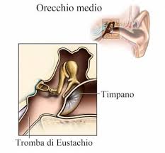 L'orecchio medio è costituito da: membrana timpanica, cavo del timpano (cassa del timpano), catena degli ossicini, apparato mastoideo e tuba uditiva o tromba di Eustachio.