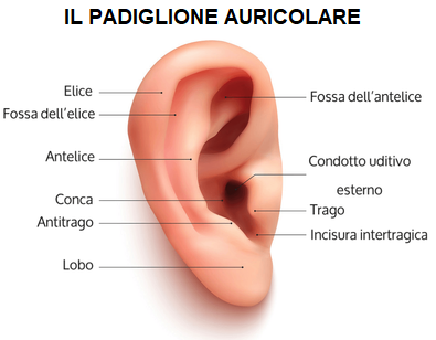 Le principali parti che lo costituiscono sono: il padiglione auricolare, il condotto uditivo esterno (o meato acustico esterno) e la faccia esterna del timpano (o membrana timpanica).